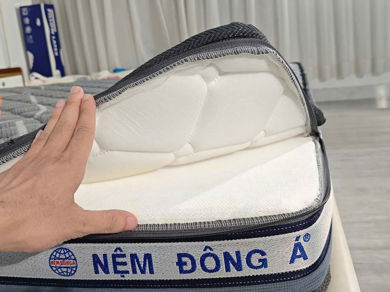 - Chìm đắm trong giấc ngủ sâu, ngon và trọn vẹn với nệm Đông Á Royal. Được làm từ foam cao cấp siêu đàn hồi, nệm ôm trọn cơ thể, giảm thiểu áp lực lên các điểm tiếp xúc, đặc biệt là vùng lưng và cổ, giúp bạn thư giãn tối đa và xua tan mọi căng thẳng.